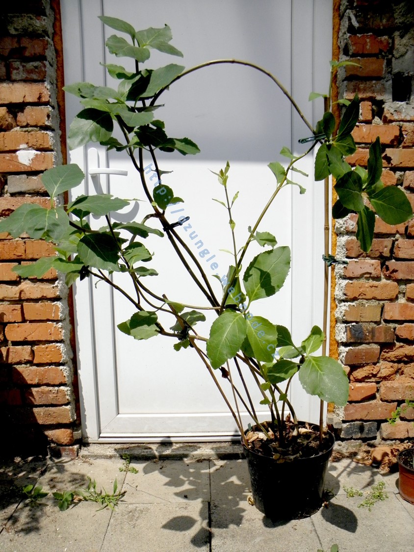 Na konci léta 2015 jsem rostlinu zkrátil z výšky 1,5m na asi 0,5m. Po tomto zásahu rostlina měla dlouho jen 4 holé klacíky. V únoru však již začala obrážet a dokonce nasazuje i poupata. Fotky ze začátku února 2016: