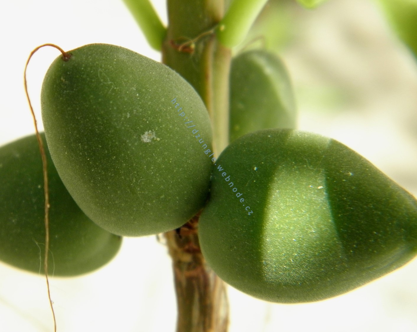 Dozrávání plodů bude pravděpodobně trvat delší dobu. Po počátečním zvětšení jsou nyní již půl roku stále stejně velké.Fotka rostliny a plodů z června 2017: